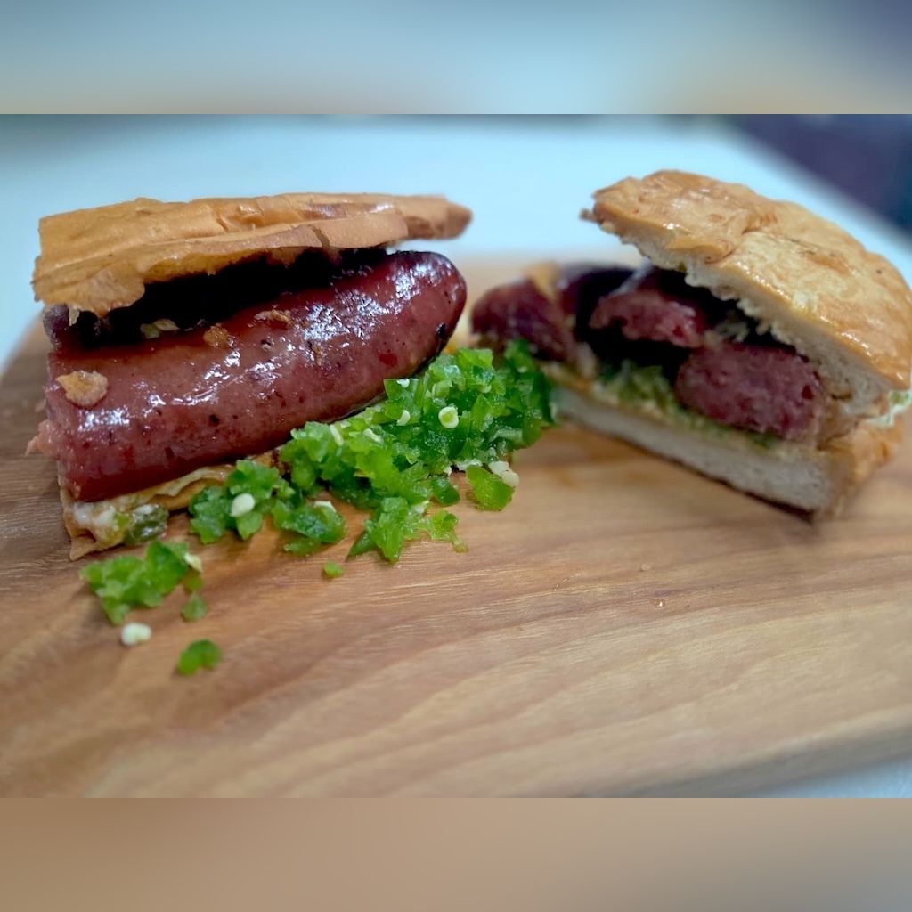 Ignite your taste buds with our Spicy Choripan Sensation. Brace yourself for a flavor explosion as jalapeños join succulent pork sausage, zesty chimichurri, and creamy mayo. A twist on the classic, delivering an unforgettable kick with every bite.